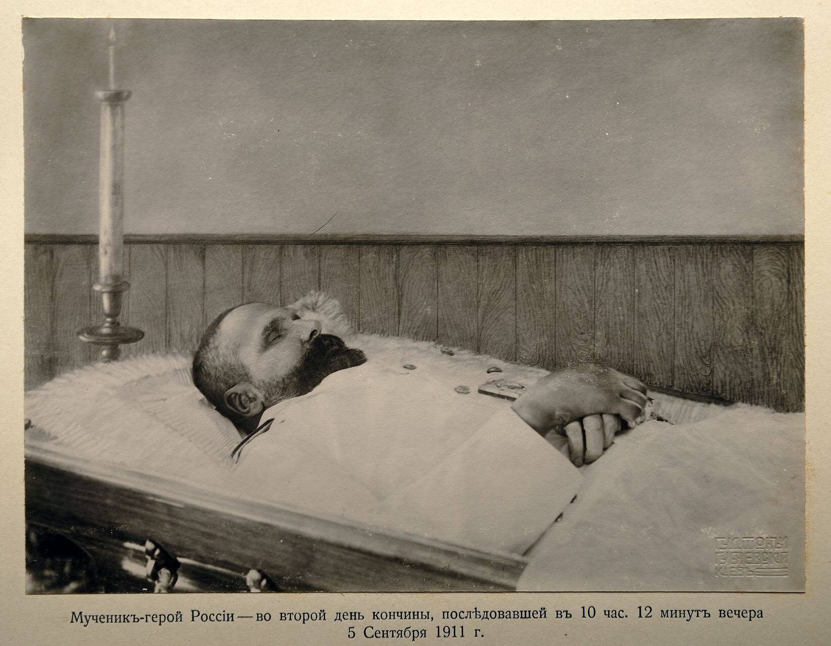 14 сентября (1 сентября ст. ст.) 1911 года террорист-эсер Д. Богров смертельно ранил премьер-министра Российской империи П. А. Столыпина