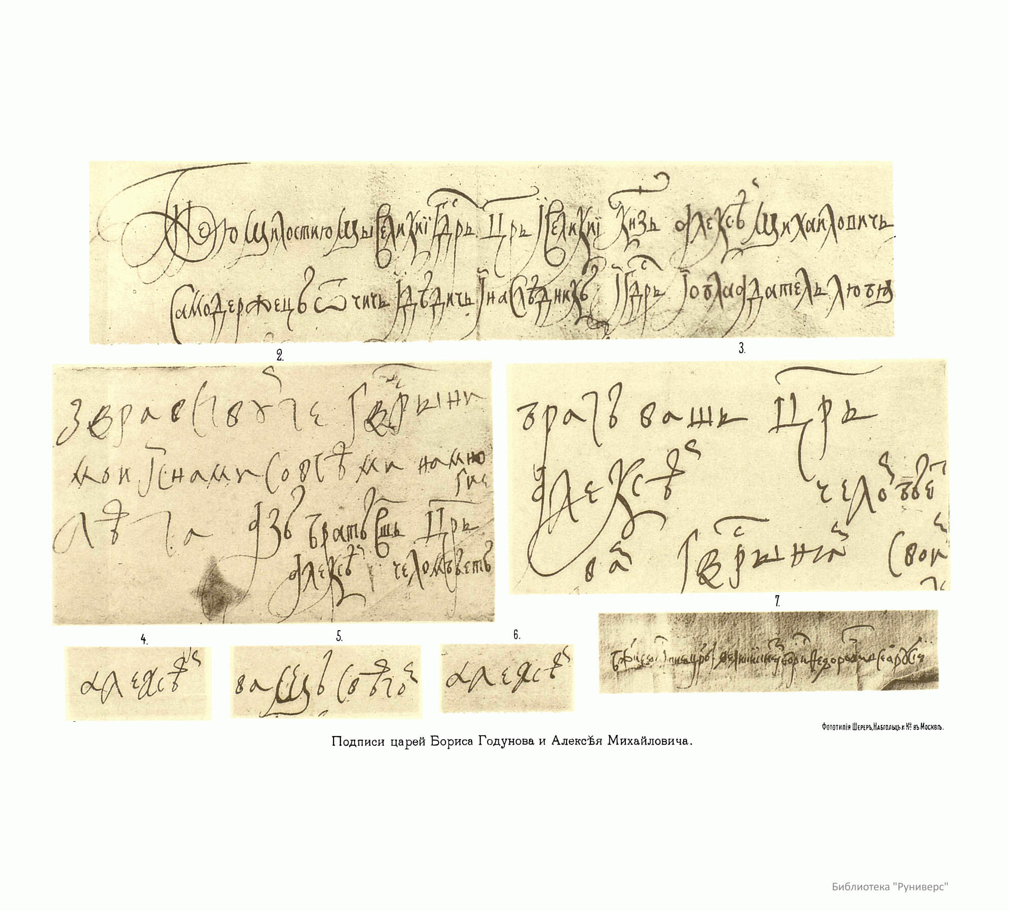 Щербачев Ю. Н.Подписи царей Бориса Годунова и Алексея Михайловича.—М.: Университетская тип. 1894