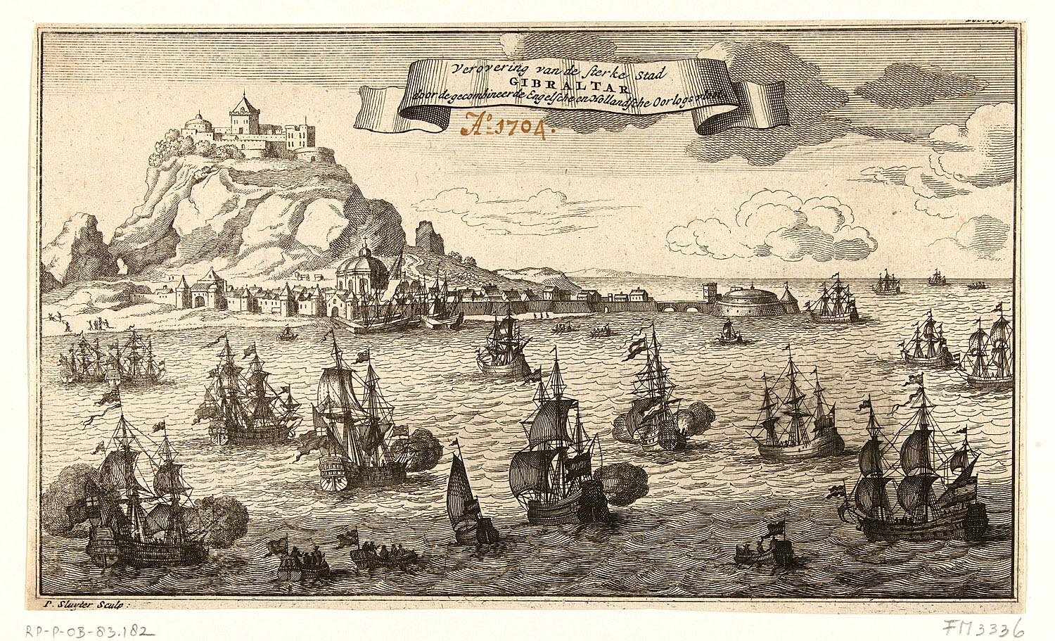 Вид на Гибралтар во время осады анго-голландским флотом в 1704 году