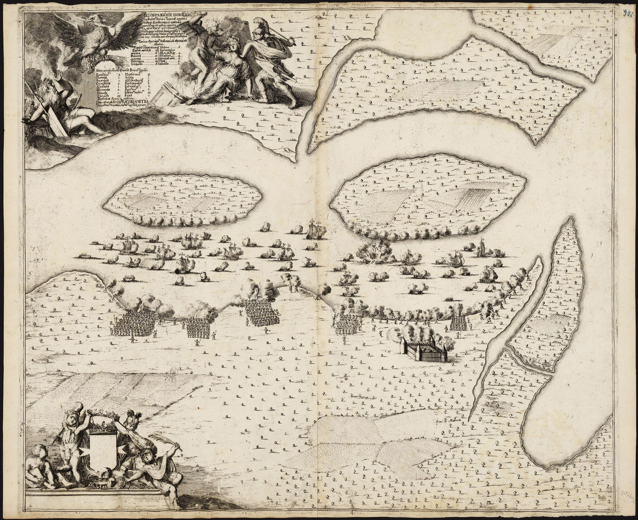 Панорама сражения на реке Амовже (Эмбахе) при впадении ее Чудское озеро 4 мая 1704 года