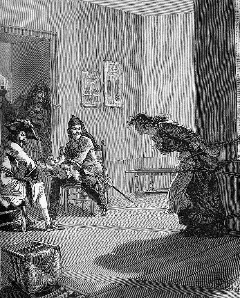 Солдаты Людовика XIV понуждают протестантку перейти в католичество
