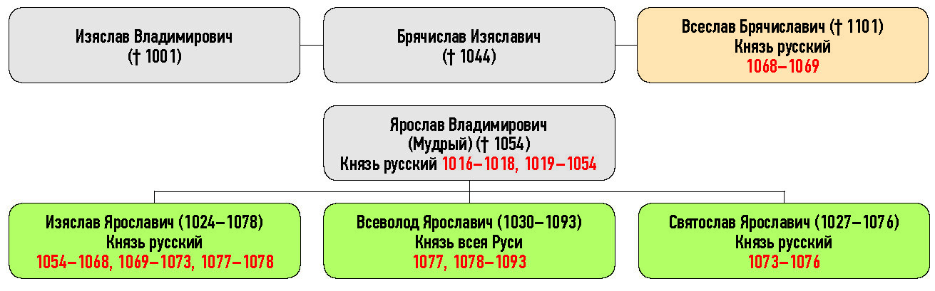 Генеалогическая схема к усобице Ярославичей с Всеславом Брячиславичем зимой 1067 г.