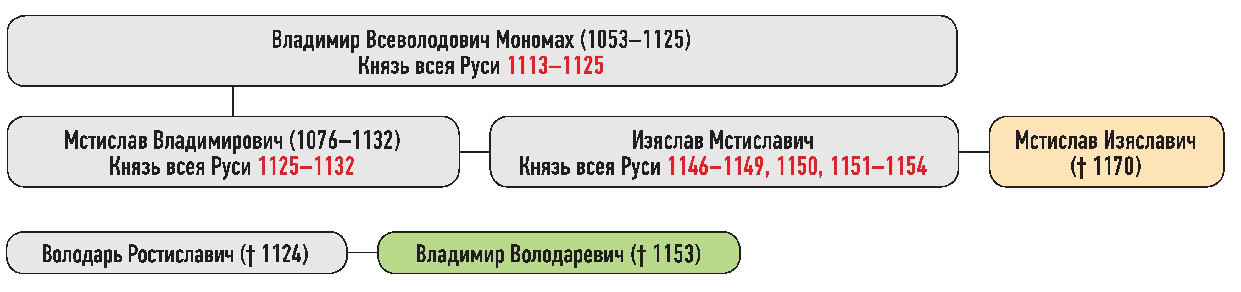 Мстислав Изяславич — сын Изяслава Мстиславича, Владимир Володаревич — сын Володаря Ростиславича