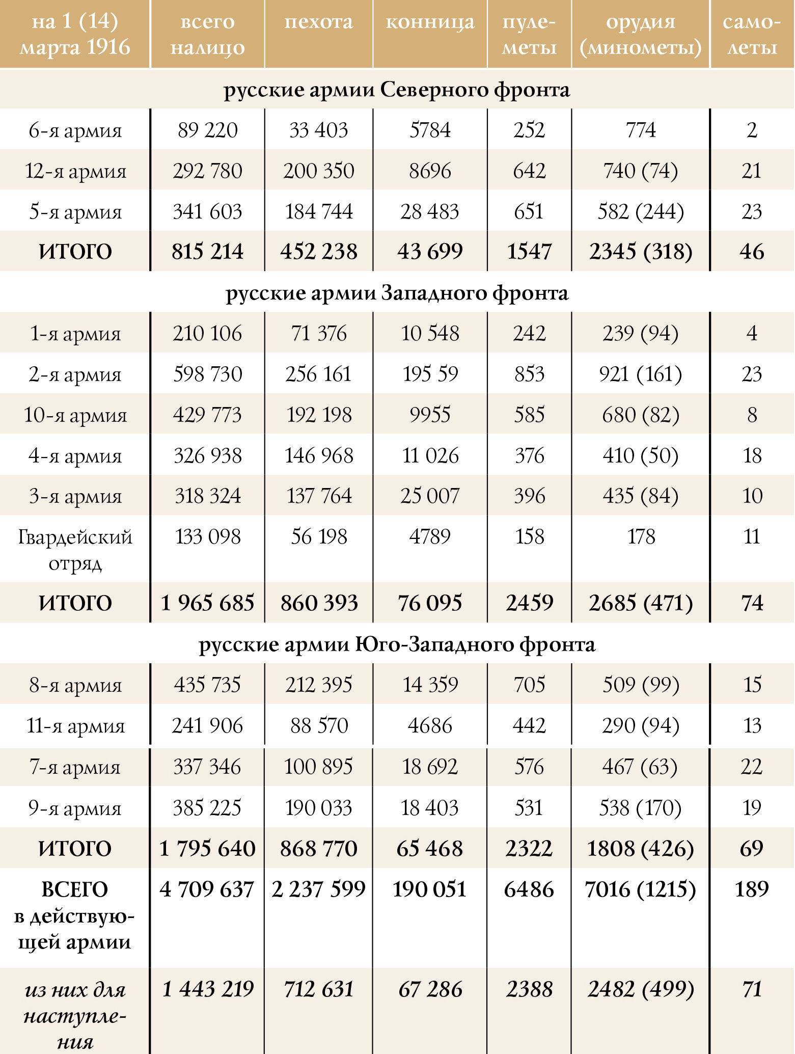Численность русской Действующей армии на 1 марта 1916 г.