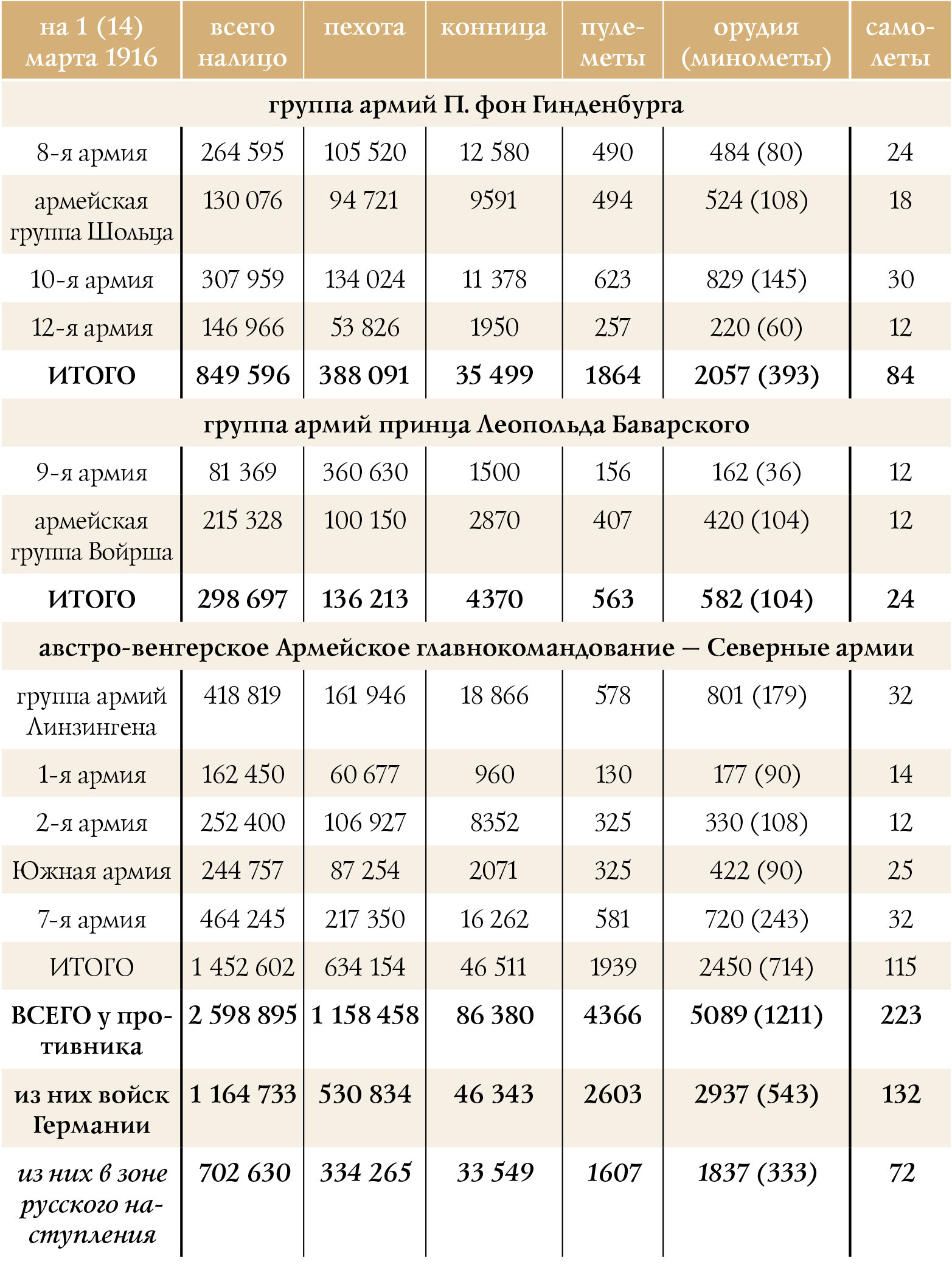 Численность германской армии на 1 марта 1916 г.