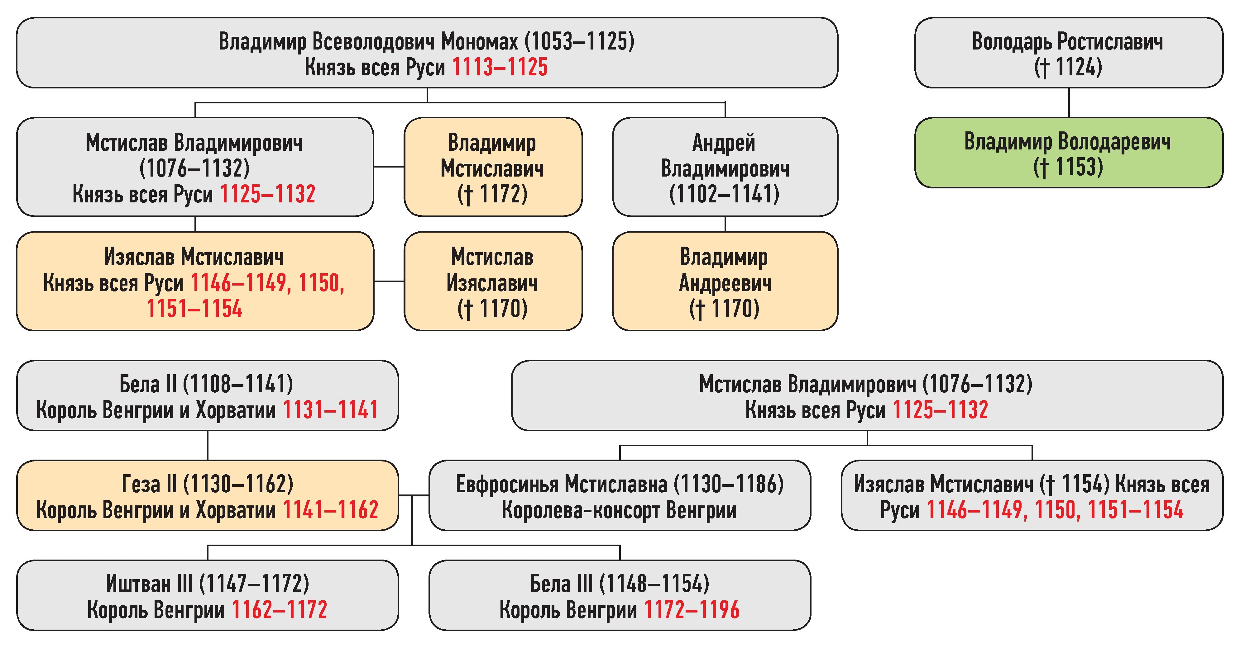 Генеалогическая схема к усобице Изяслава Мстиславича и Владимира Володаревича в 1152 г.