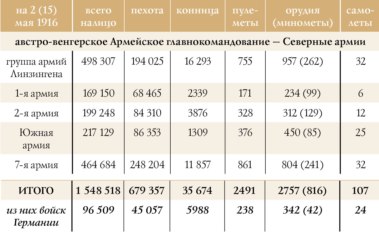 Численность германской армии на 2 мая 1916 г.