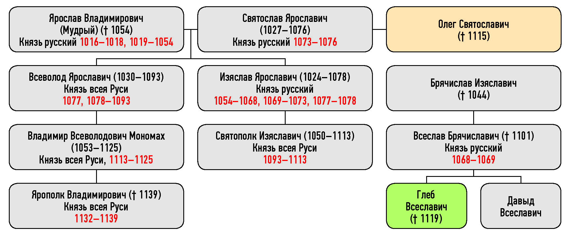 Генеалогическая схема к усобице Ярославичей и Глеба Всеславича в 1104 г.