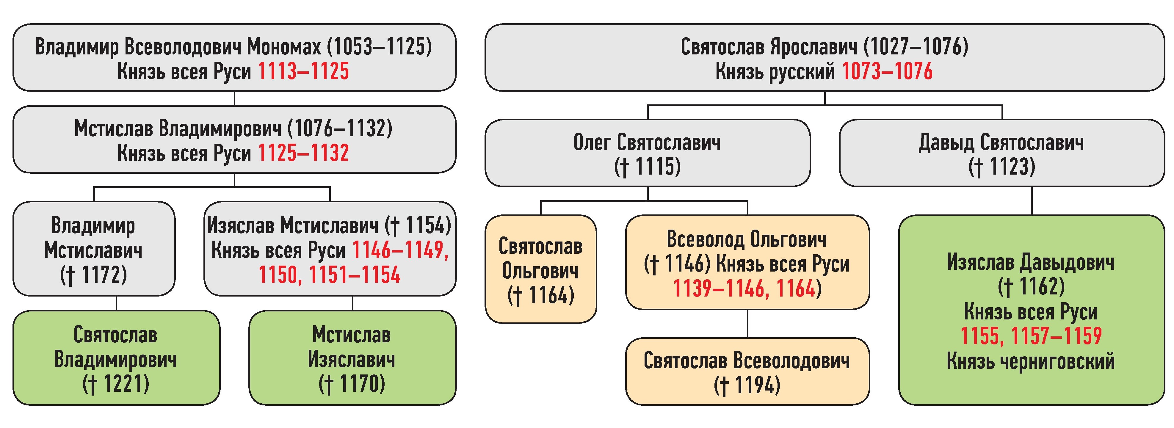 Генеалогическая схема к усобице Святослава Ольговича и Изяслава Давыдовича в мае 1157 г.