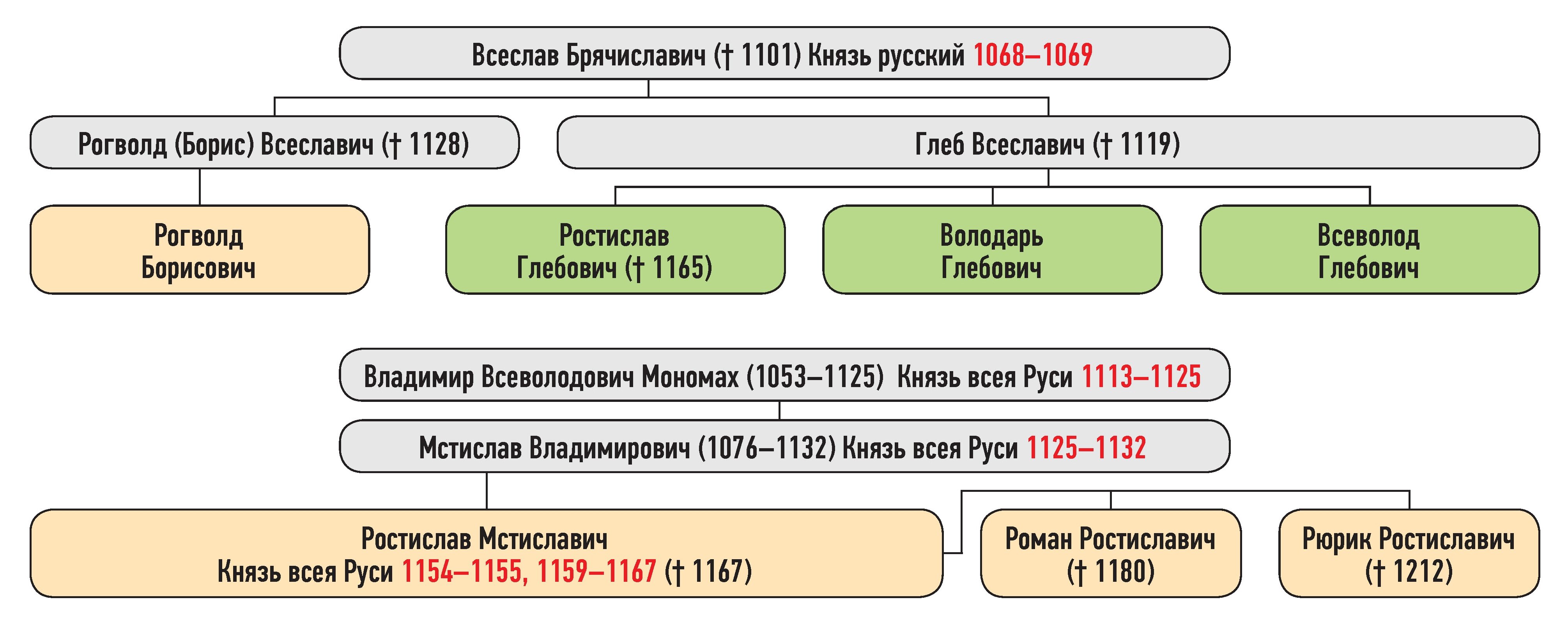 Генеалогическая схема к усобице Рогволода Борисовича и Ростислава Глебовича в июле 1159 г.