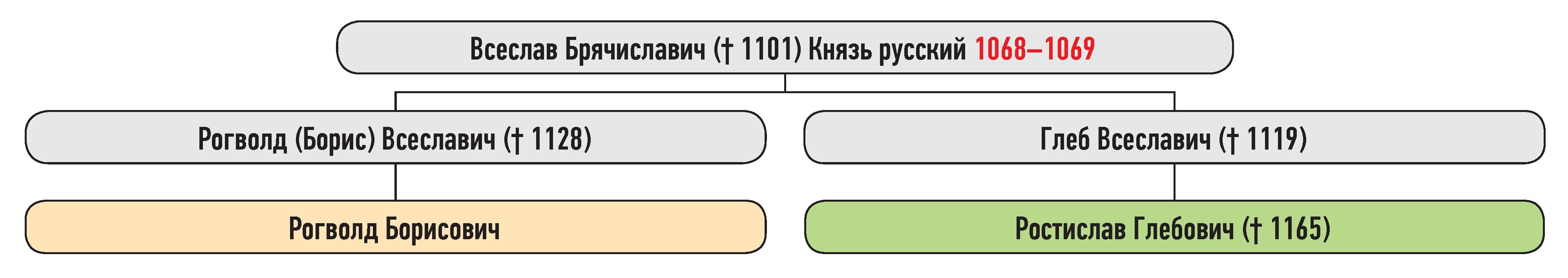 Генеалогическая схема к усобице Рогволода Борисовича и Ростислава Глебовича в 1160 г.