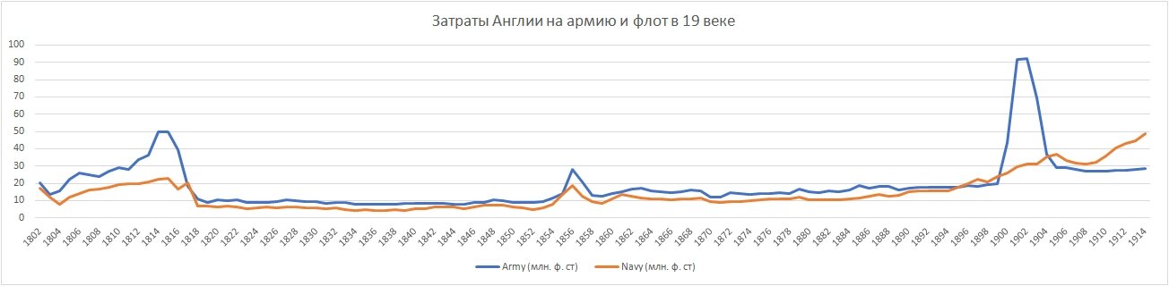 Затраты Англии на армию и флот в 19 веке