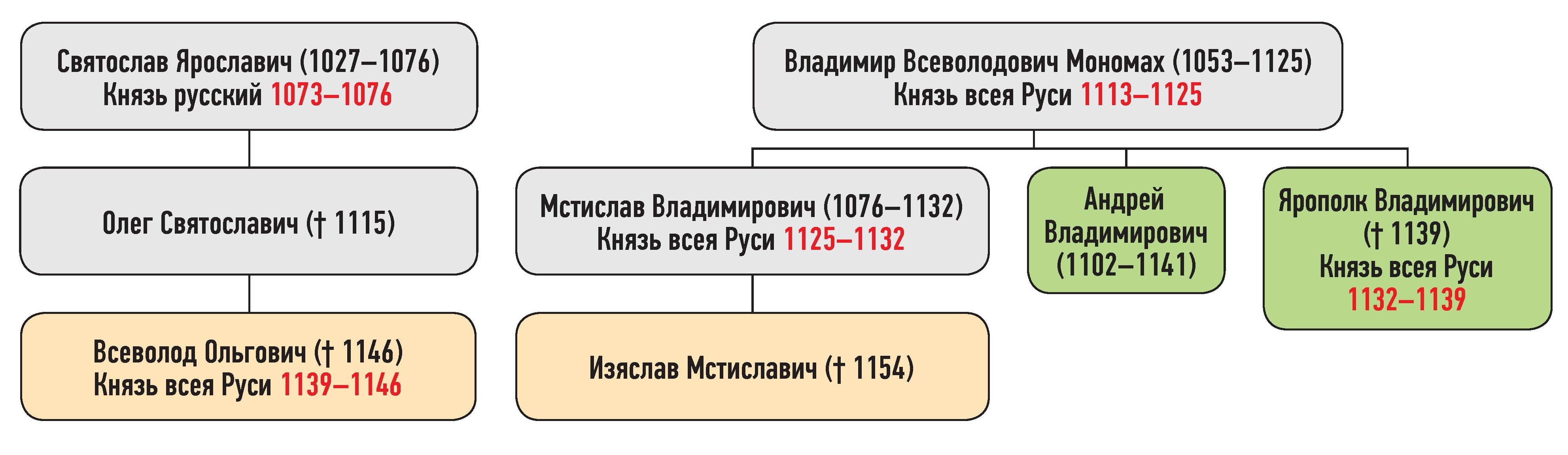 Генеалогическая схема к продолжению усобицы Мстиславичей и Владимировичей зимой 1135 г.