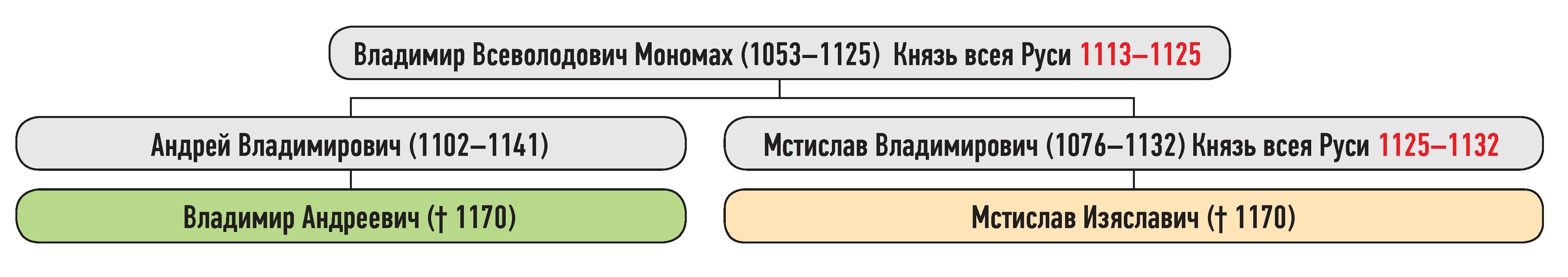 Генеалогическая схема к усобице Мстислава Изяславича и Владимира Андреевича в 1162 г.