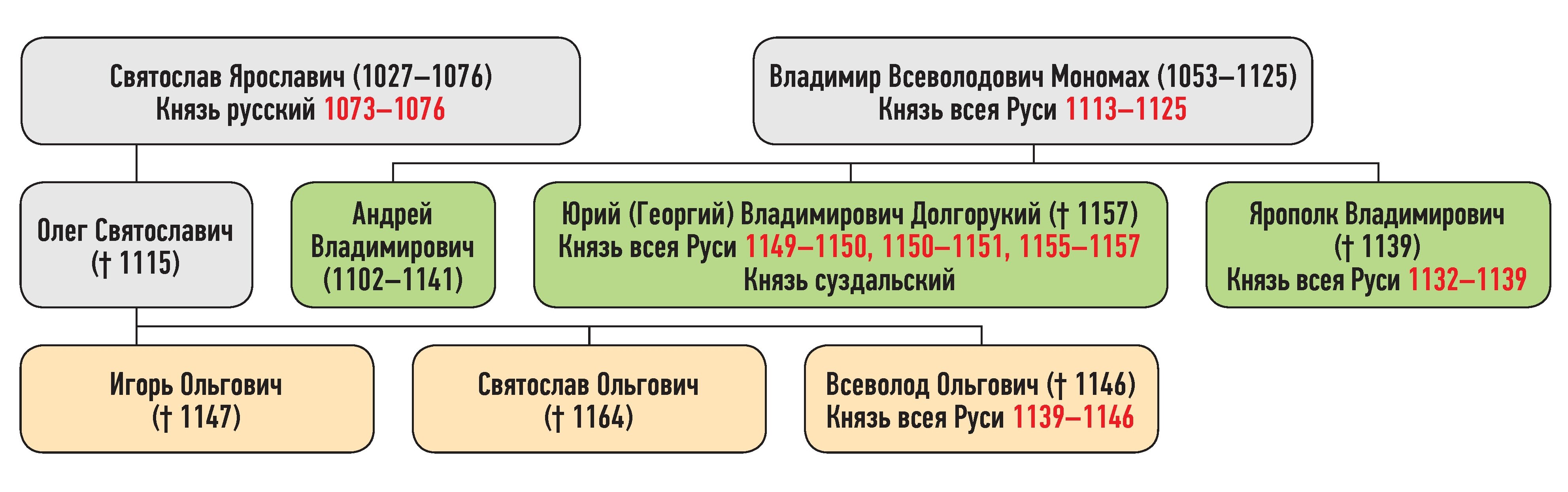 Всеволод Ольгович — сын Олега Святославича, Юрий Владимирович — сын Владимира Мономаха