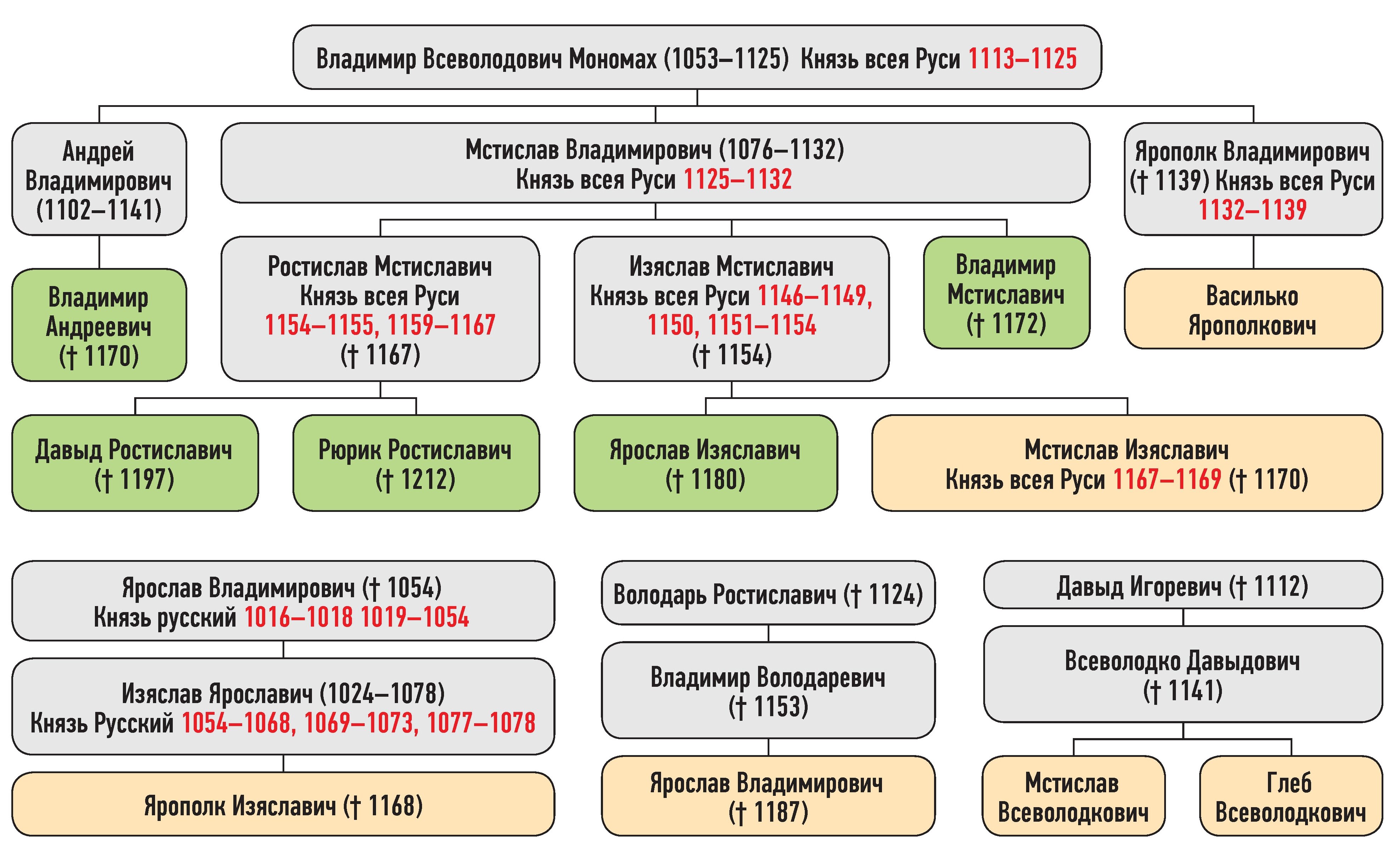 Оригинальная схема, создана для описания усобицы Мстислава Изяславича и Владимира Мстиславича в 1167 г.