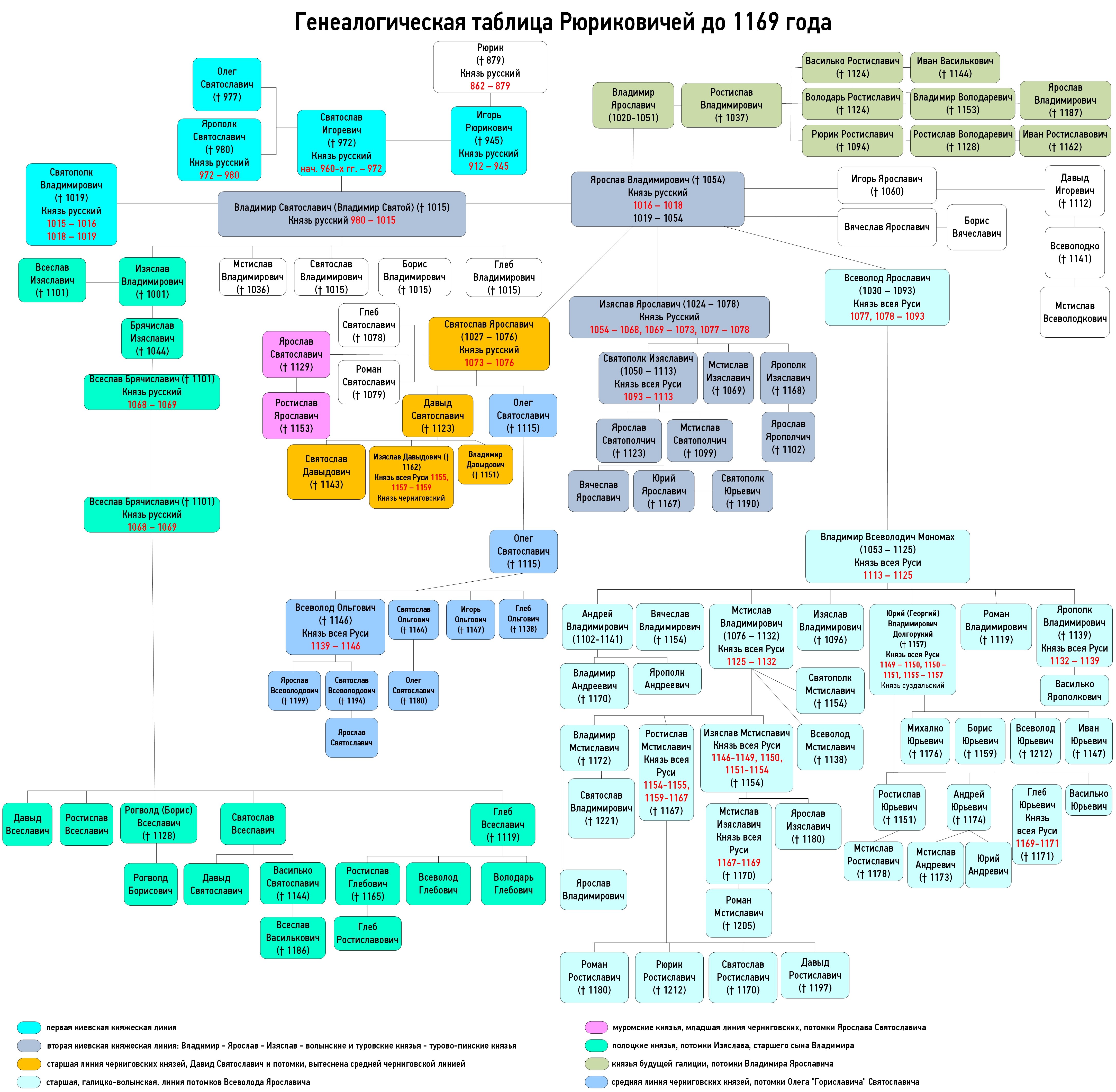 Оригинальная таблица, создана для описания генеалогических связей Рюриковичей до 1169 г.