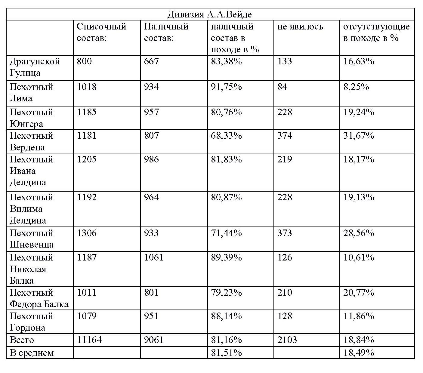 Таблица 19 к статье "База русских полков (1700–1914 гг.). Опыт составления"