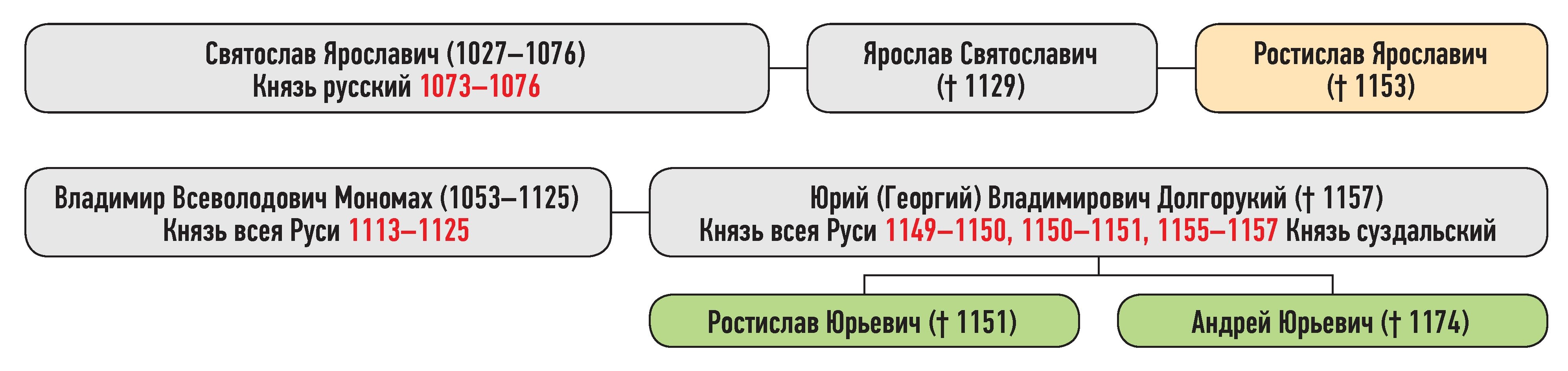Андрей и Ростислав Юрьевичи — сыновья Юрия Владимировича, Ростислав Ярославич — внук Святослава Ярославича