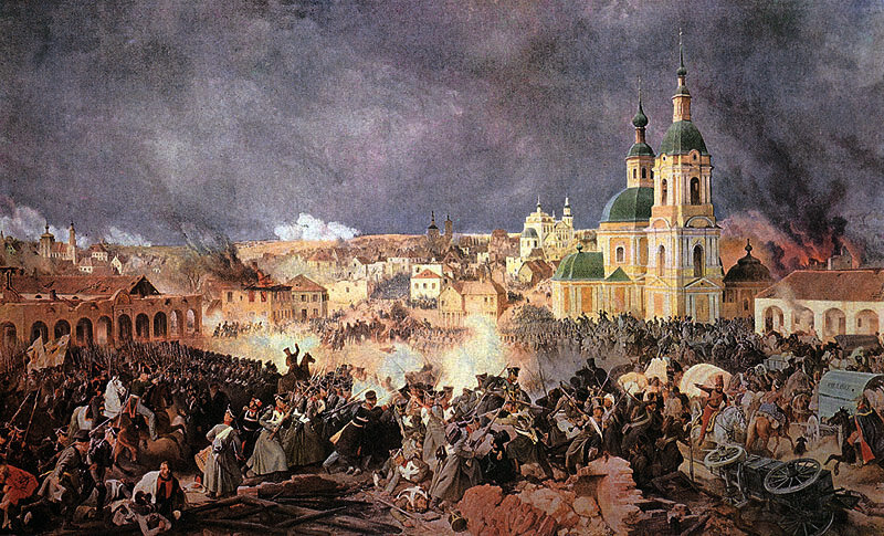 22 октября 1812 г. под Вязьмой авангард русской армии М. А. Милорадовича и донские казаки М. И. Платова (25 тыс. чел.) атаковали корпуса Даву, Богарне, Понятовского и Нея (37 тыс. чел.). Несмотря на численный перевес противника, русские добились победы и взяли Вязьму. Французы потеряли около 8,5 тыс. чел., русские — 2 тыс. Сражение ускорило бегство армии Наполеона из России.