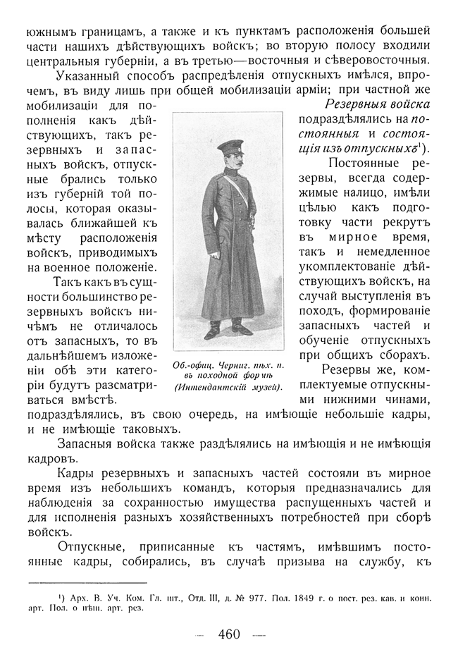 Обер-офицер Черниговского пехотного полка в походной форме.