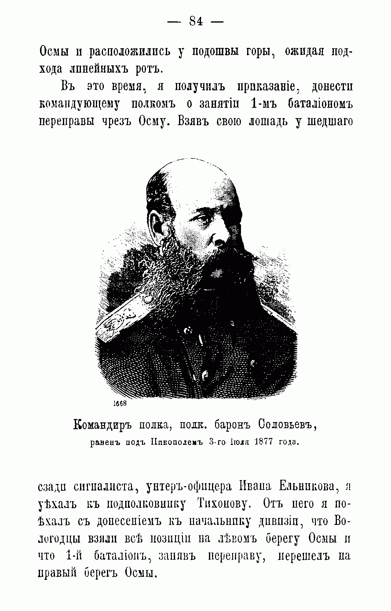 Командир полка, полк. барон Соловьев, ранен под Никополем 3-го июля 1877 года.