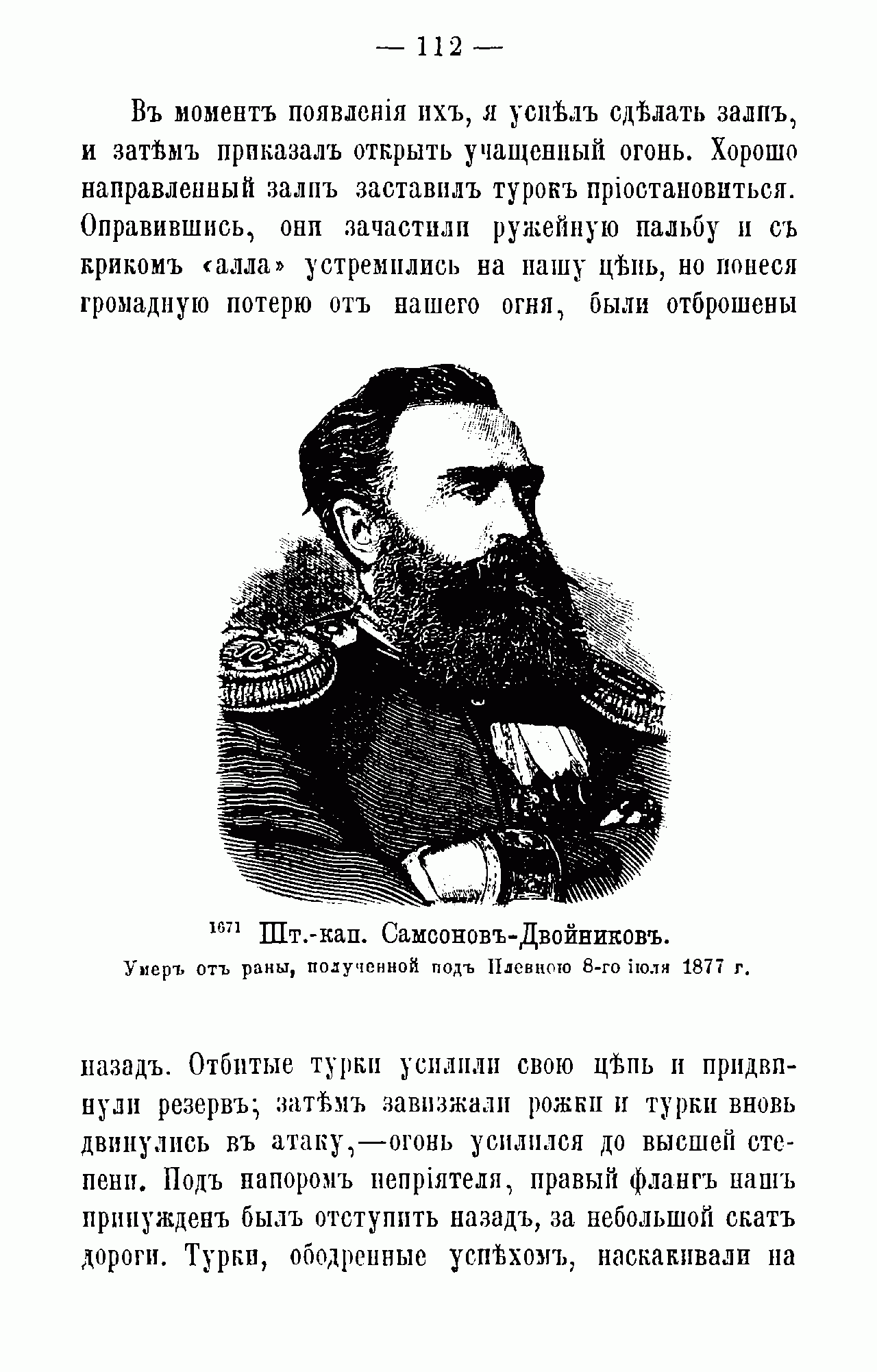 Шт.-капитан Самсонов-Двойников. Умер от раны, полученной под Плевной 8-го июля 1877 года.