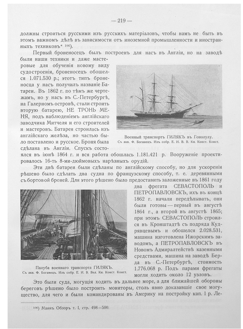 Данное издание является первым прижизненным издание автора, который полностью описывает историю развития Российского флота и кораблестроения, в сочетании с кратким изложением истории флота вообще.