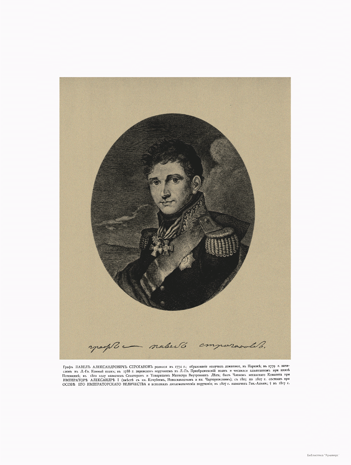 Товарищ Министра Внутренних Дел Граф Павел Александрович Строганов (1774-1817), исполнял дипломатические поручения.