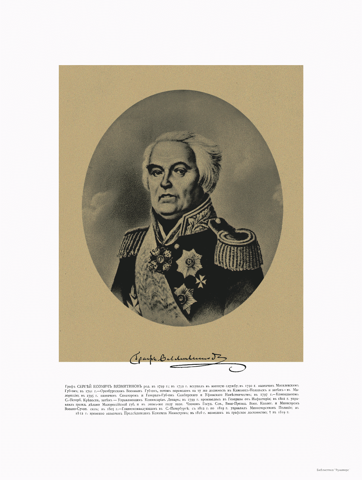 Управляющий Министерством Полиции Граф Сергей Козьмич Вязмитинов, 1749-1819.