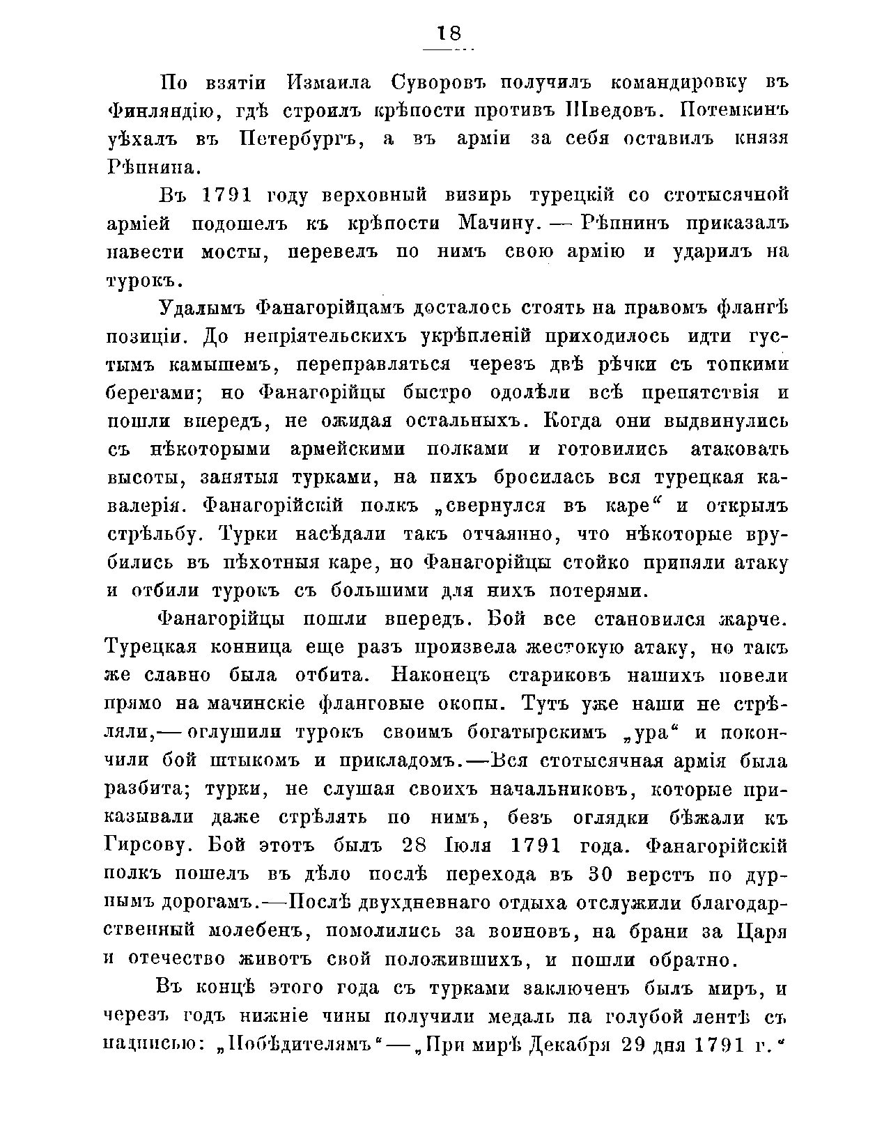Краткая история 11-го гренадерского Фанагорийского Генералиссимуса Князя Суворова полка