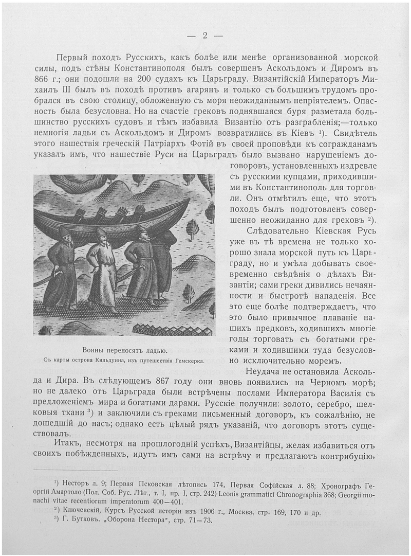 Воины переносят ладью. С карты острова Кильдуина, из путешествия Гемскерка.