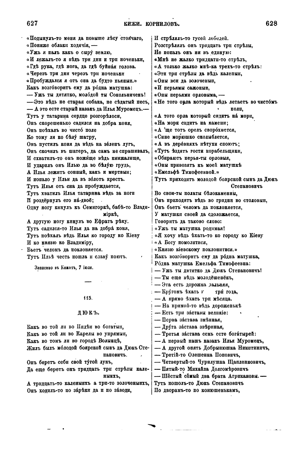 Онежские былины, записанные Александром Федоровичем Гильфердингом летом 1871 года