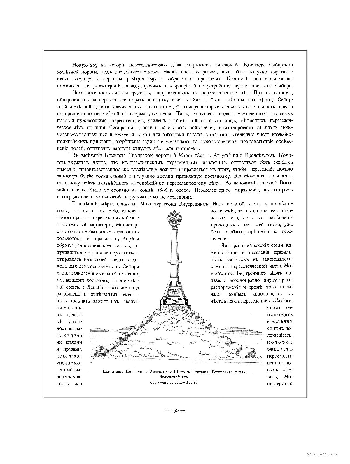 Памятник Императору Александру III в м. Омеляна, Ровенского уезда, Волынской губернии. Сооружен в 1894-95 гг.