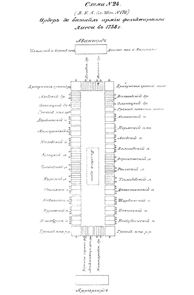 Схема №24. Ордер де батайль армии фельдмаршалла Ласси в 1738г