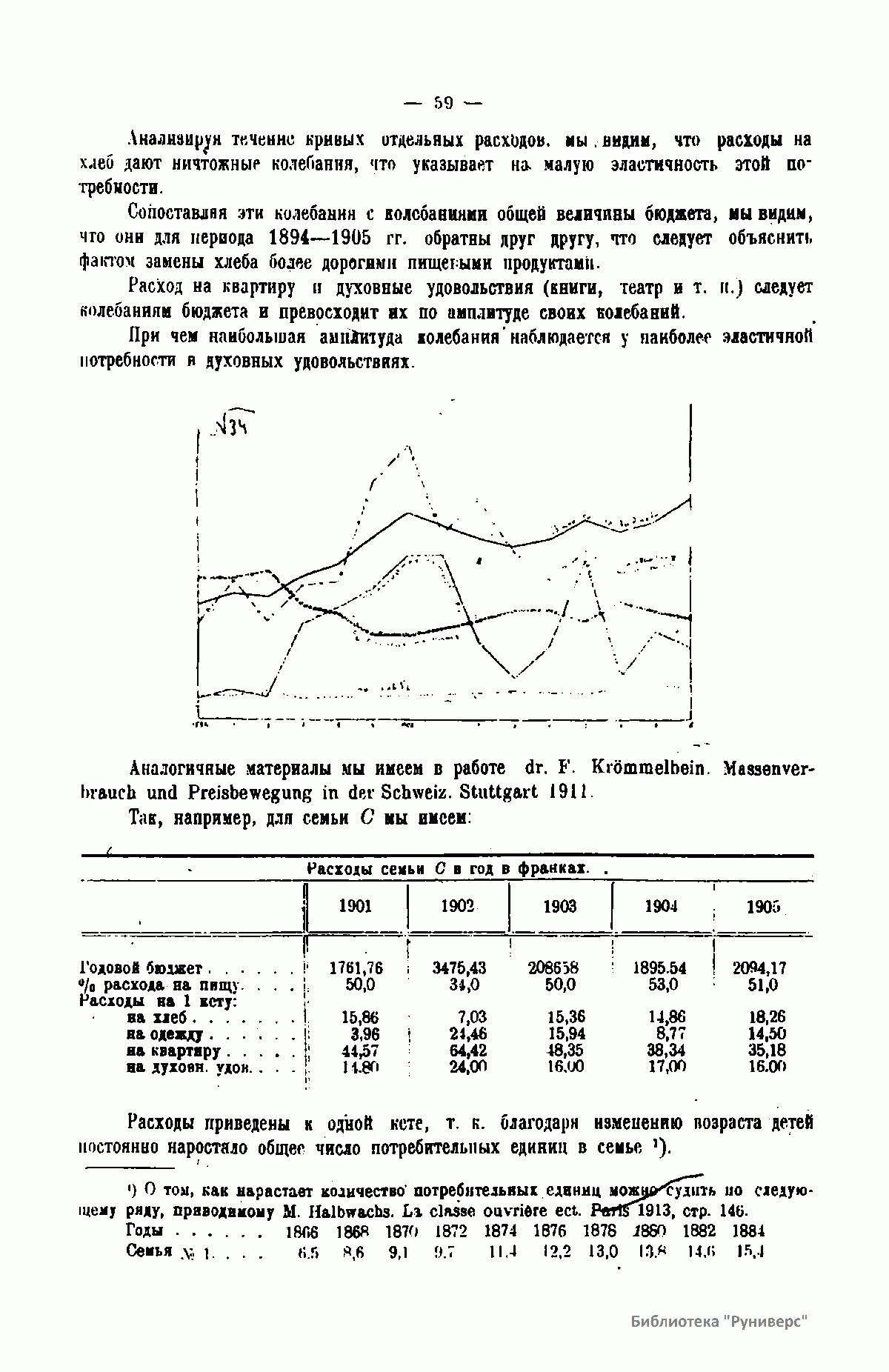 №34. Изменение годового расхода в марках на хлеб, одежду, духовные удовольствия и квартиру по данным Германского Имперского Статистического бюро.