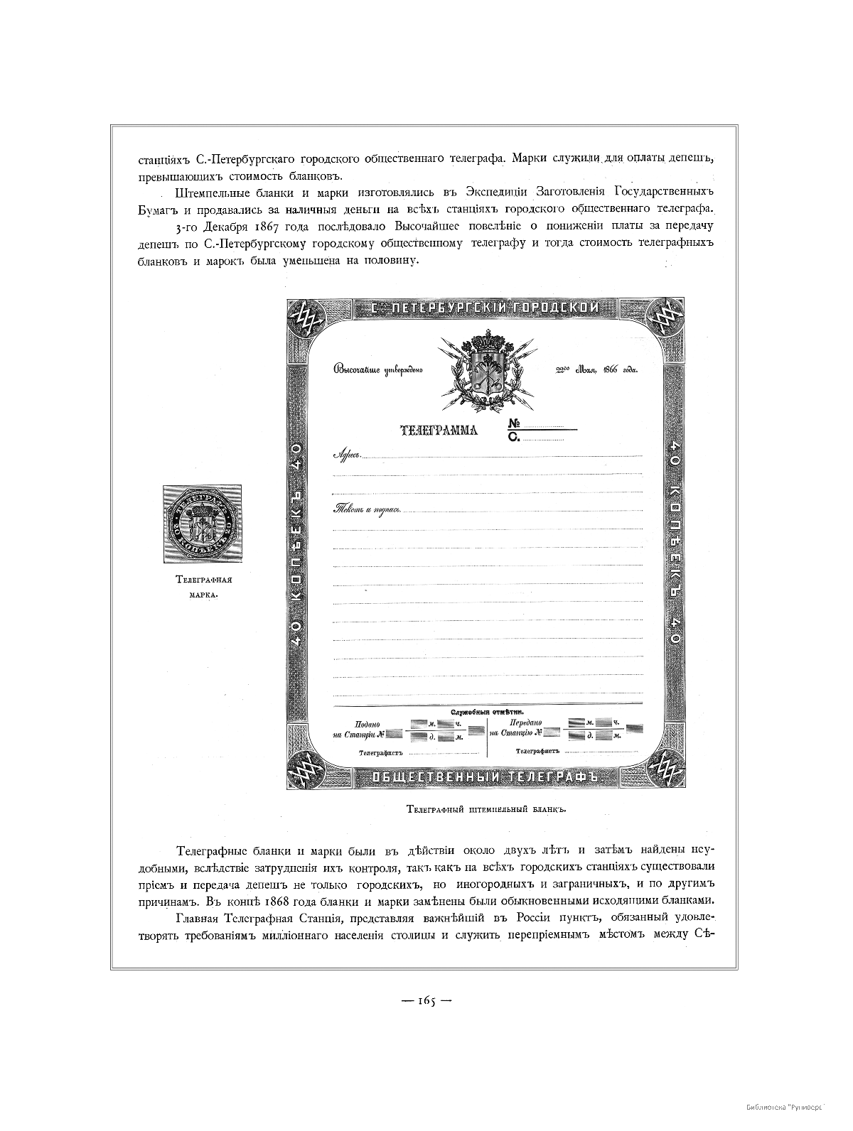 Телеграфная марка и телеграфный штемпельный бланк.