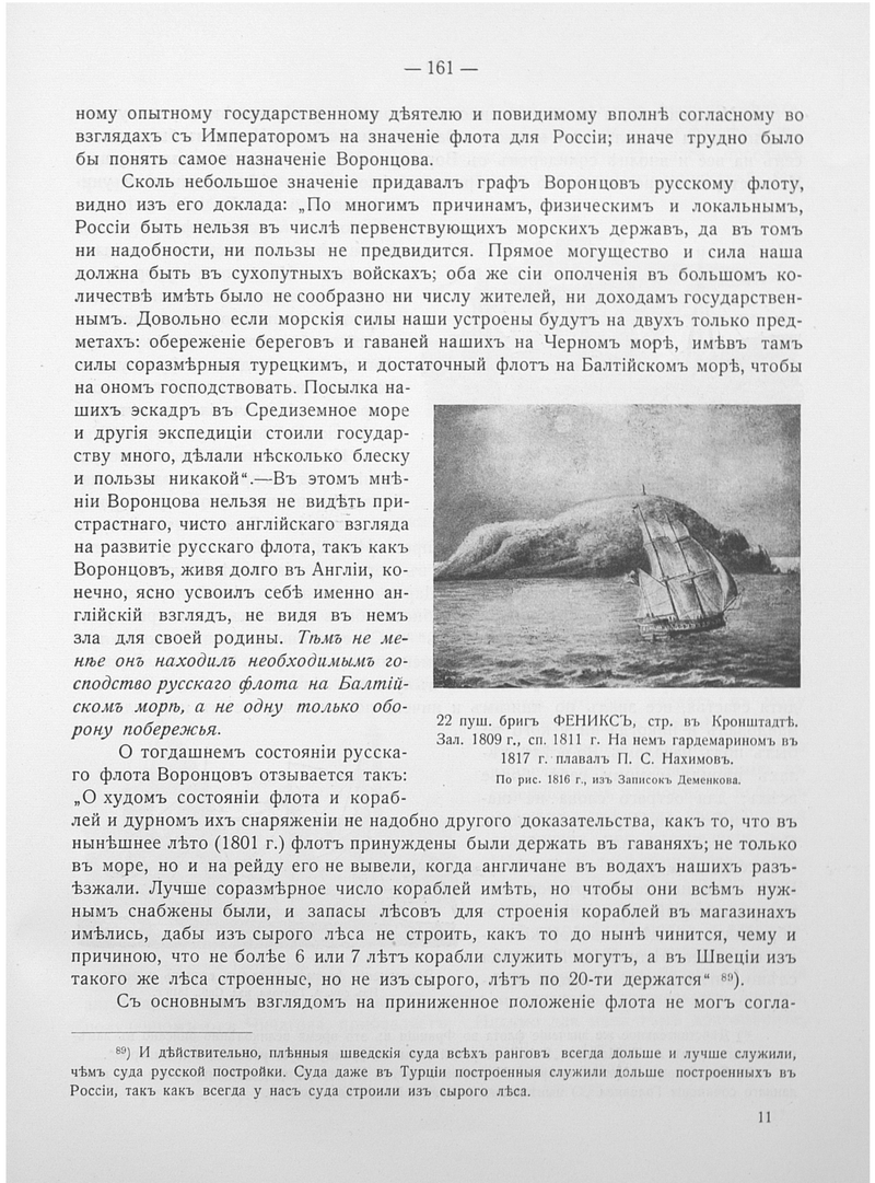 22 пуш.бриг ФЕНИКС, стр. в Кронштадте. Зал. 1809 г.,сп. 1811 г. На нем в 1817 г.плавал Нахимов.