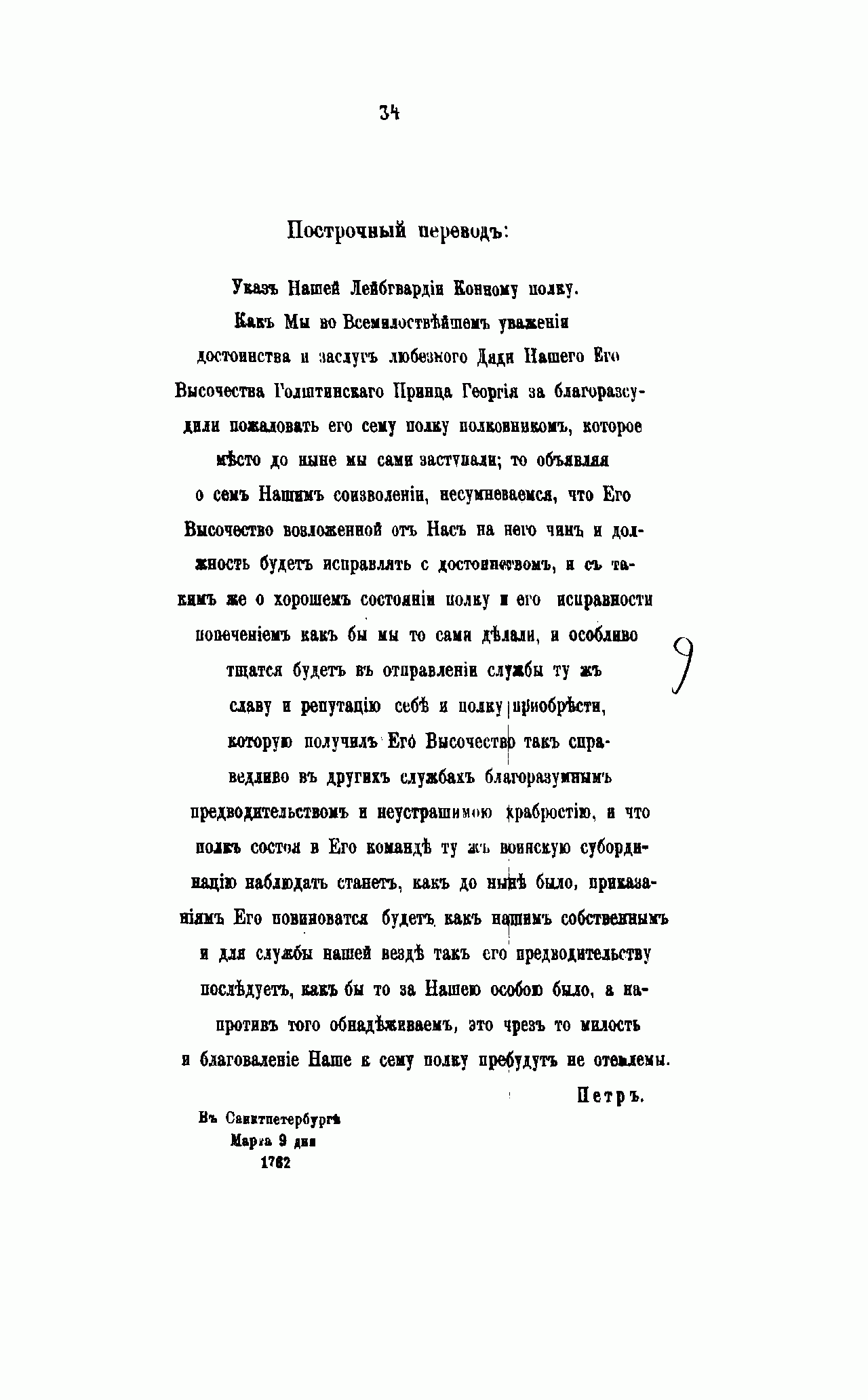 Факсимиле с собственноручной записки Императрицы Екатерины Алексеевны от 25-го августа 1762-го года.