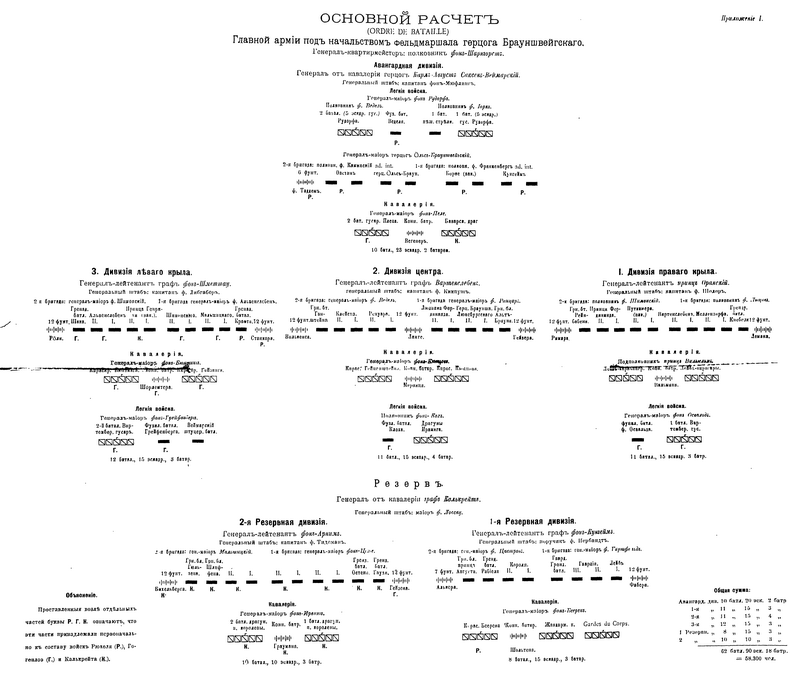 Основной расчет (Ordre de bataile) Главной армии под начальством фельдмаршала герцога Брауншвейгского.