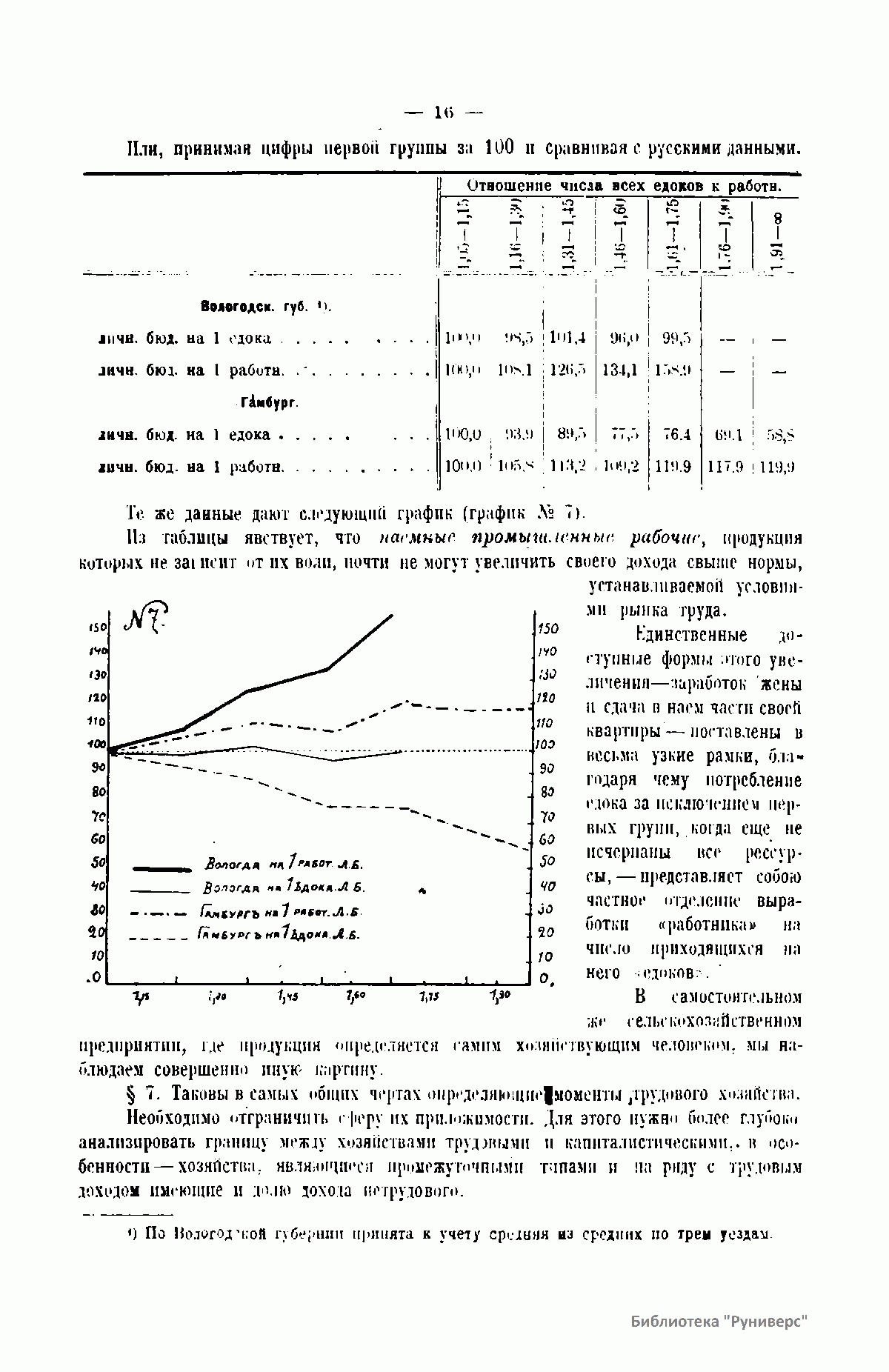 №7. Влияние соотношения едоки/работники на потребление и продукцию промышленных работников в Гамбурге и в России.