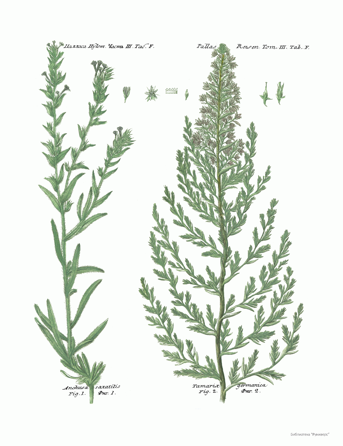 Том III. Таб.F. Anchusa saxatilis.Tamarix germanica.