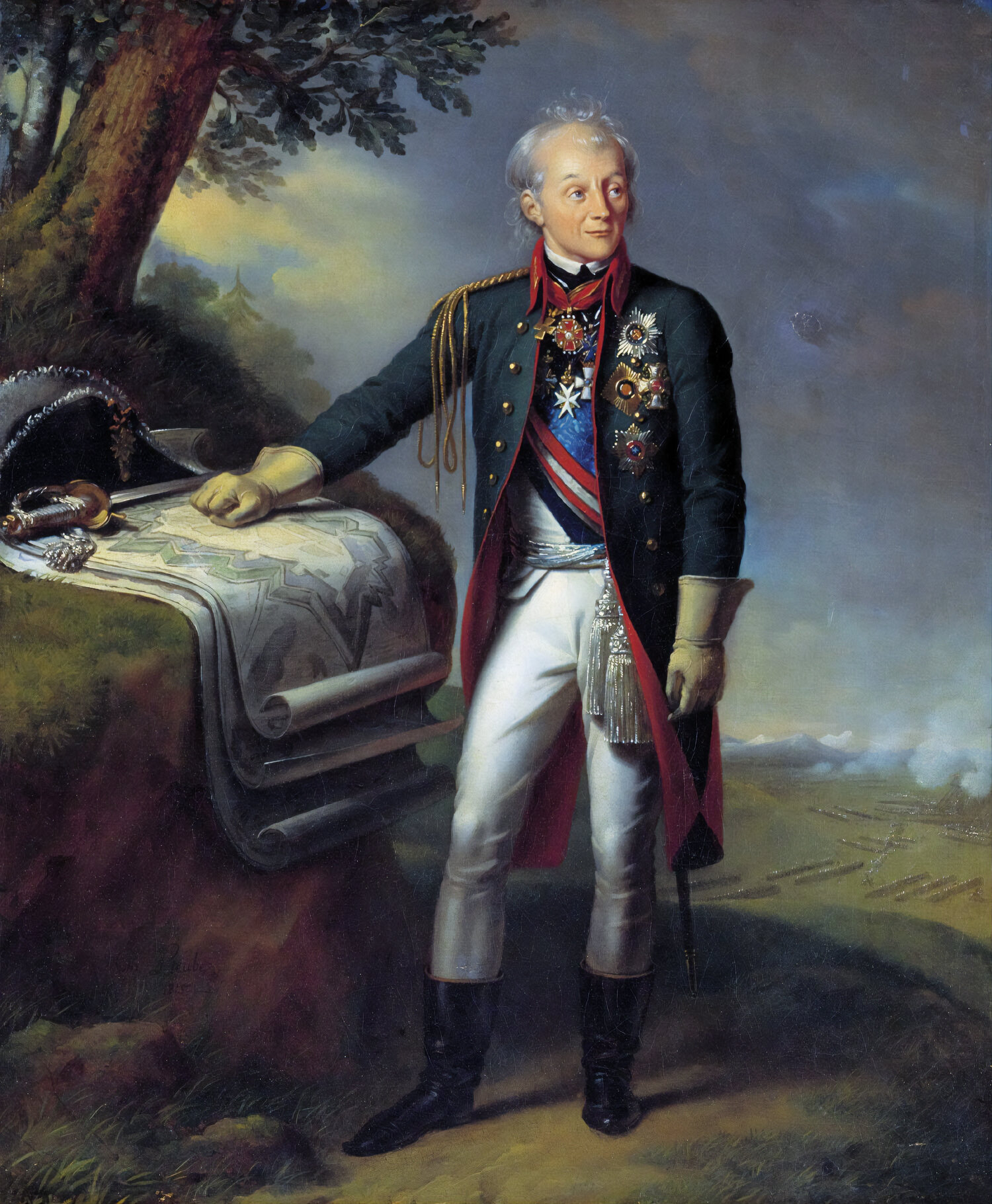 Александр Васильевич Суворов, русский полководец, основоположник русской военной теории. Генералиссимус (1799), генерал-фельдмаршал (1794), генерал-фельдмаршал Священной Римской империи (1799), великий маршал войск пьемонтских, кавалер всех российских орденов своего времени, вручавшихся мужчинам, а также семи иностранных