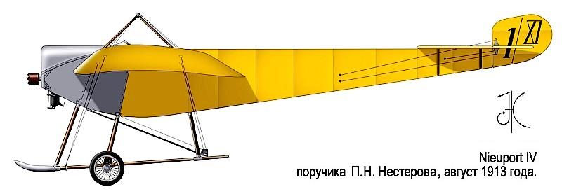 Самолет П. Н. Нестерова над Куреневским аэродромом в Киеве и схема мертвой петли (воспроизведение собственноручного чертежа Нестерова)