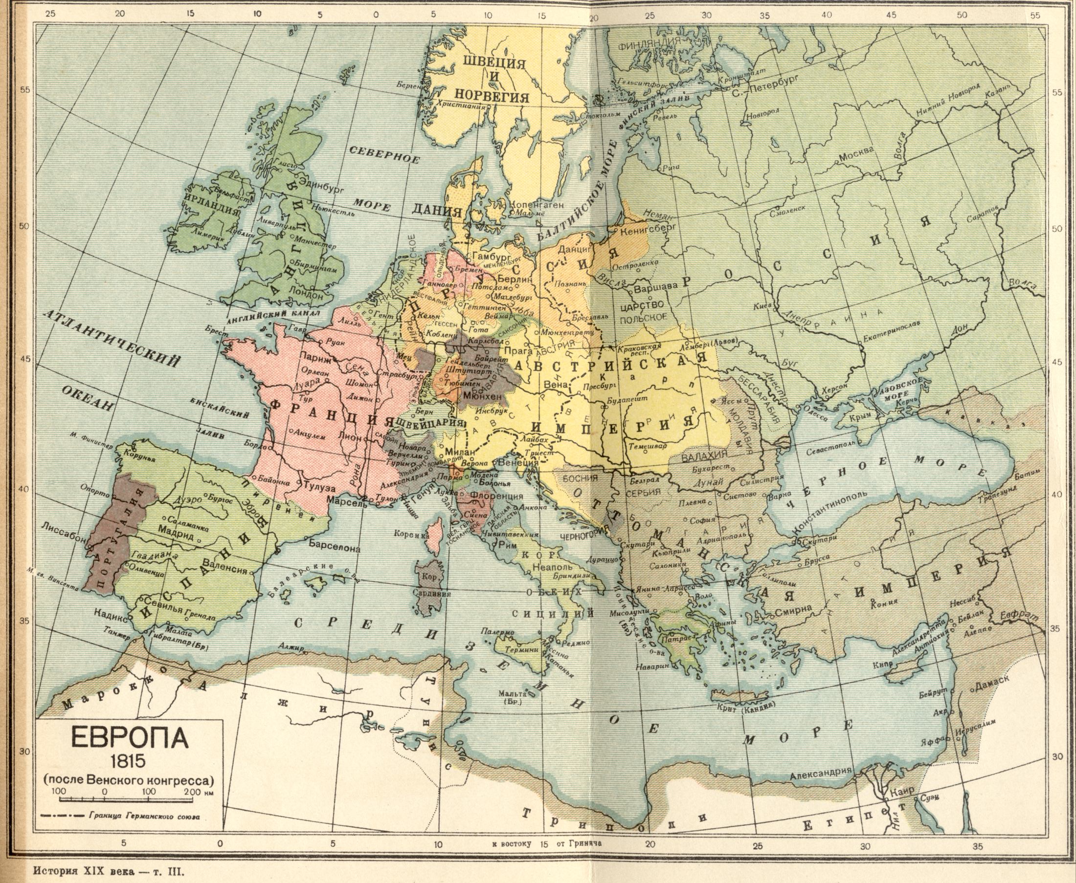 Политическая карта Европы 1815 года (после Венского конгресса)