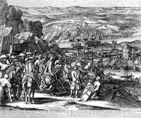 Взятие Азова русскими войсками в 1696. Гравюра конца XVII века