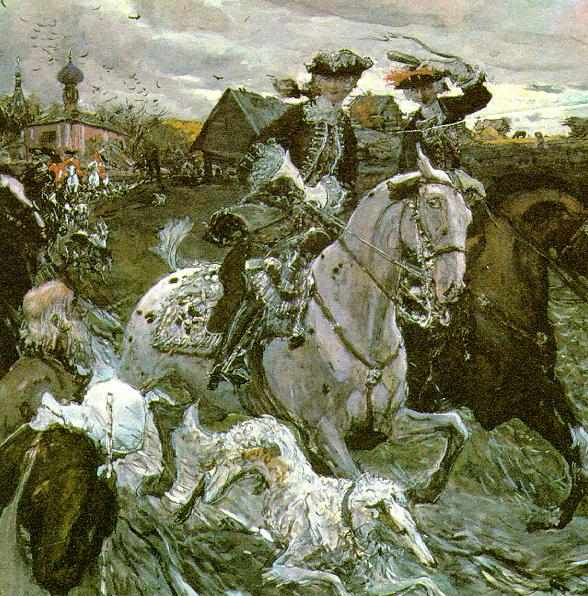 Выезд императора Петра II и цесаревны Елизаветы Петровны на охоту. В.Серов. 1900 год. Русский музей, Санкт-Петербург