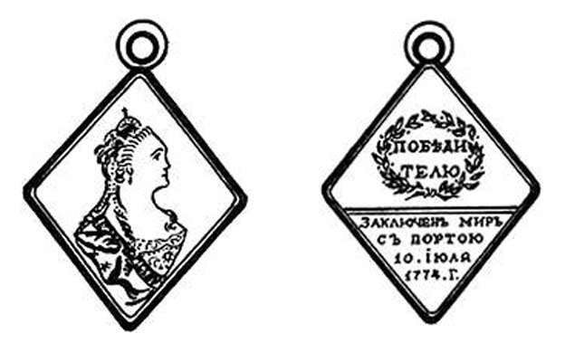 Медаль в честь Кючук-Кайнарджийского мира. 1774 год. ПрорисьДоговор установил границу России на Северо-Западном Кавказе по реке Кубань, декларировал отделение от Османской империи Крымского ханства, которое объявлялось независимым, и уступку России части морского побережья с крепостями Керчь, Еникале, Кинбурн. Большая и Малая Кабарда оставались в составе российских владений. Русским торговым судам предоставлялось право свободно плавать по Чёрному морю и проходить через Черноморские проливы. Молдова и Валахия признавались автономными княжествами и переходили под покровительство России.Кючук – Кайнарджийский мирный договор