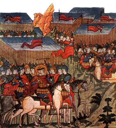 Дмитрий Донской перед войском. Миниатюра из Лицевого летописного свода
