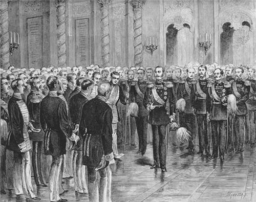 Александр II призывает московских дворян приступить к освобождению крестьянства. 1857. Гравюра начала 1880-х гг.